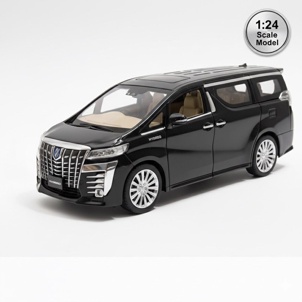 Experience luxury in miniature with this meticulously crafted 1:24 scale Alphard Vellfire Executive Lounge Hybrid diecast model car. This collector-quality black replica showcases impressive attention to detail, from its distinctive chrome-accented front grille to its precisely rendered LED-style headlights. The model features a beautifully detailed interior with beige upholstery, matching the executive character of the full-size vehicle. Crafted from die-cast metal, this model demonstrates superior build quality with perfectly aligned panel gaps and high-quality paint finish. The model includes authentic touches like the hybrid badging, multi-spoke alloy wheels, and panoramic roofline. Opening doors reveal the meticulously recreated cabin, while the precise scaling makes it an ideal display piece. Whether you're a serious collector or automotive enthusiast, this miniature representation of premium MPV captures the essence of the original vehicle's sophisticated design and luxury status.